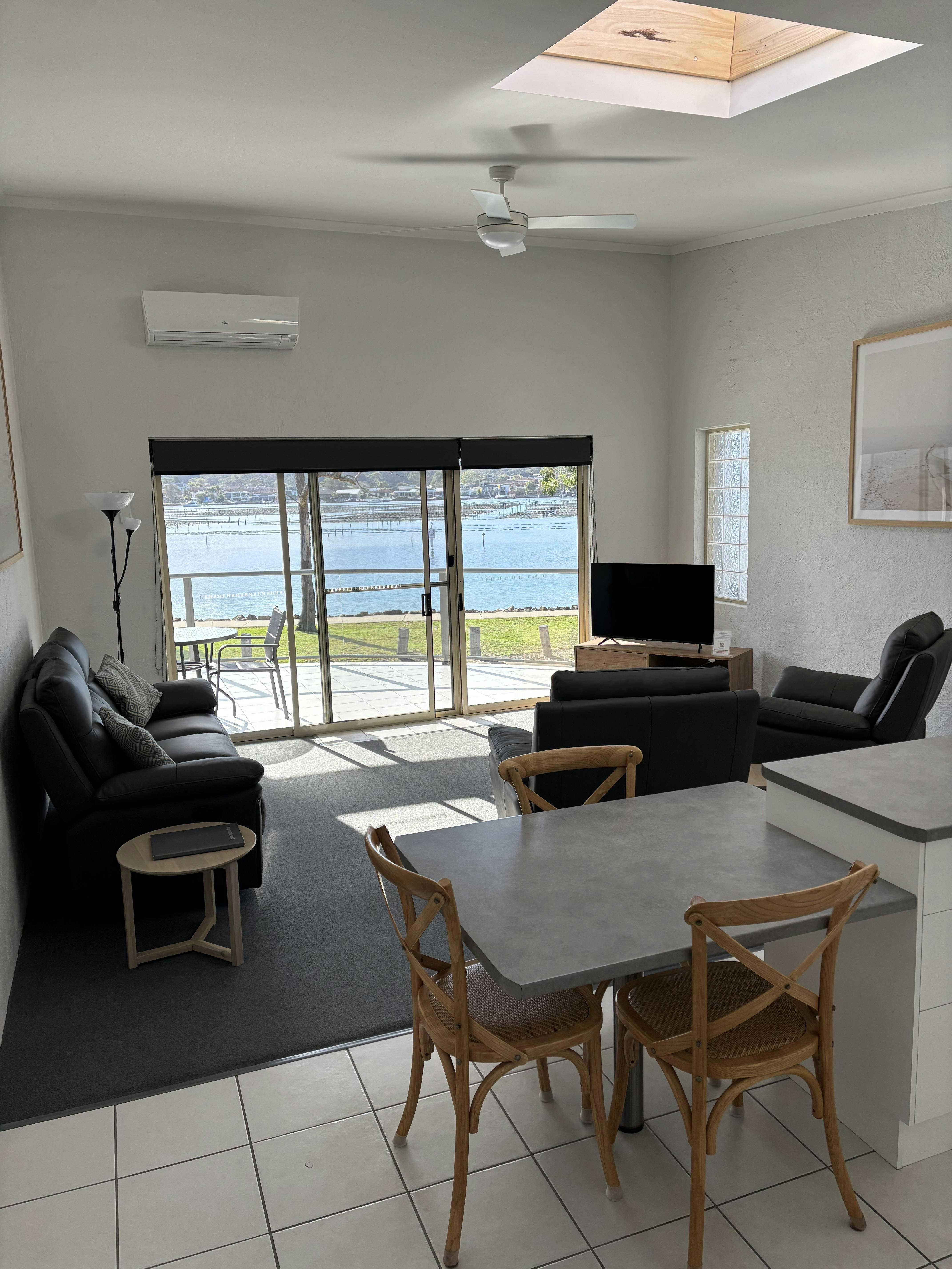 Escape to the Upstairs 1 Bedroom apartment in beautiful Merimbula! This charming apartment offers a comfortable retreat with a prime location near the lake and ocean. Enjoy stunning waterfront views and access to a communal pool, perfect for relaxation. The apartment features a well-equipped kitchen, a cozy private balcony, and modern amenities like air conditioning and Wi-Fi. Explore nearby attractions like the lake, and enjoy activities like fishing and kayaking. It's ideal for couples or business travelers, offering a perfect blend of comfort and convenience for your next getaway. The apartment features a comfortable bedroom with a queen-sized (Unit 9) or King size (Unit 8) bed, ensuring a restful night's sleep. The private bathroom offers all the necessary amenities. The living and dining area provides a cozy space to relax and enjoy meals, while the well-equipped kitchen allows for easy meal preparation. Step outside onto your private balcony and soak in the serene atmosphere. Enjoy the convenience of modern amenities, including air conditioning and Wi-Fi, ensuring a comfortable and connected stay. Nestled on the beautiful Fishpen Peninsular, the Upstairs 1 Bedroom apartment offers a prime location for exploring the best of the Sapphire Coast. Just a stone's throw away, you'll find the stunning Merimbula Lake, perfect for a leisurely stroll or a day of kayaking. The pristine ocean is also within easy reach, offering opportunities for swimming, sunbathing, and enjoying the refreshing sea breeze. For dining, you're spoiled for choice with a variety of restaurants and cafes nearby, serving up fresh seafood and local delicacies. Explore the charming shops and boutiques in the town center, a short drive away, where you can find unique souvenirs and gifts. The neighborhood is known for its relaxed atmosphere and friendly locals, making it an ideal base for your coastal getaway.